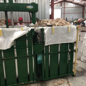 > Werk met kabel – en wielaksie om die bale te druk (Hoe sterker die persoon hoe hoër sal die persvermoë wees)